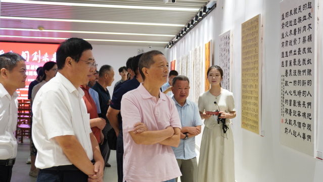 仪式上,参展学生代表刘靖童发言,沈伟与方留共同为参展学生代表颁发入展证书,丁绍东宣布书画展开幕。随后,与会嘉宾参观了书画作品展陈。